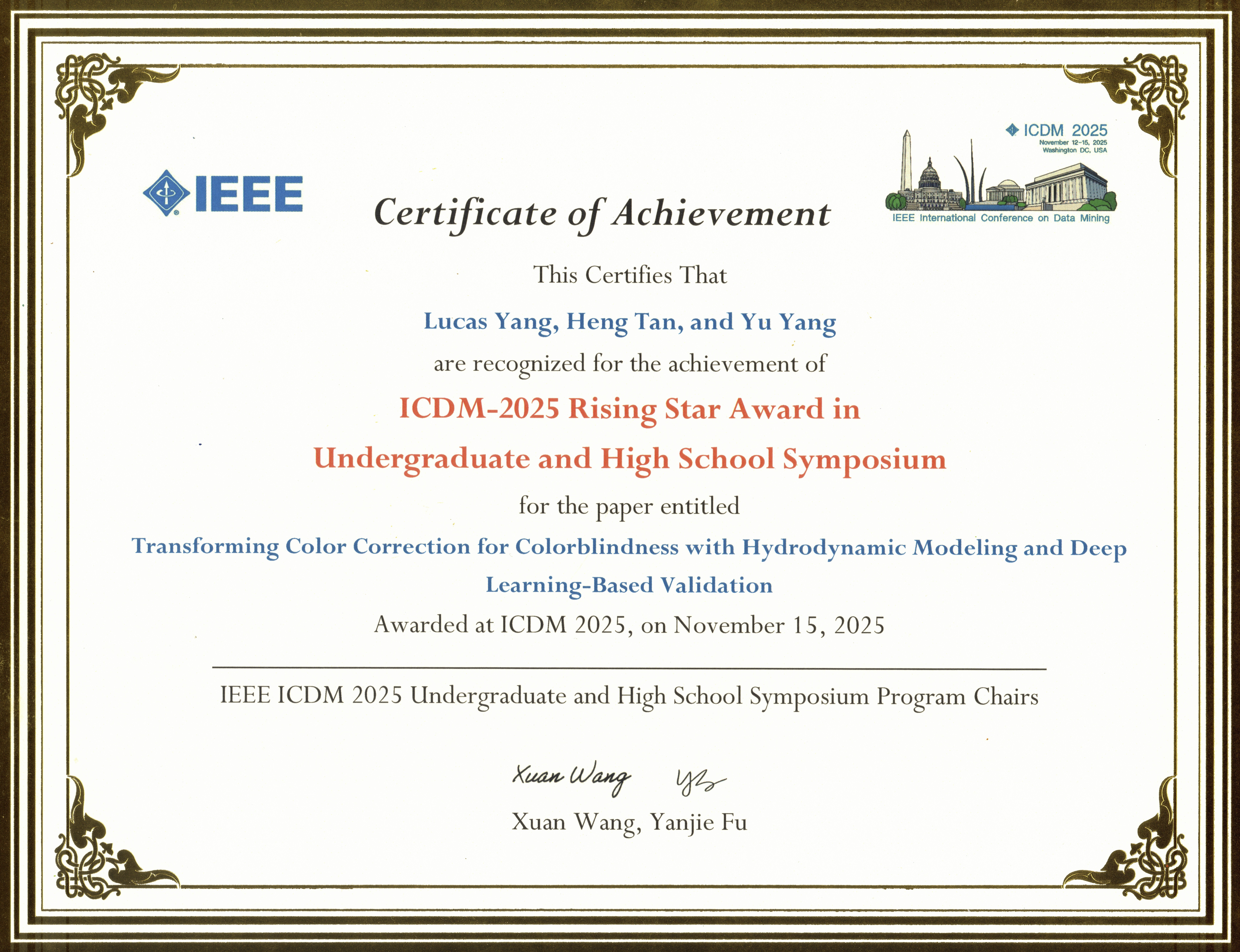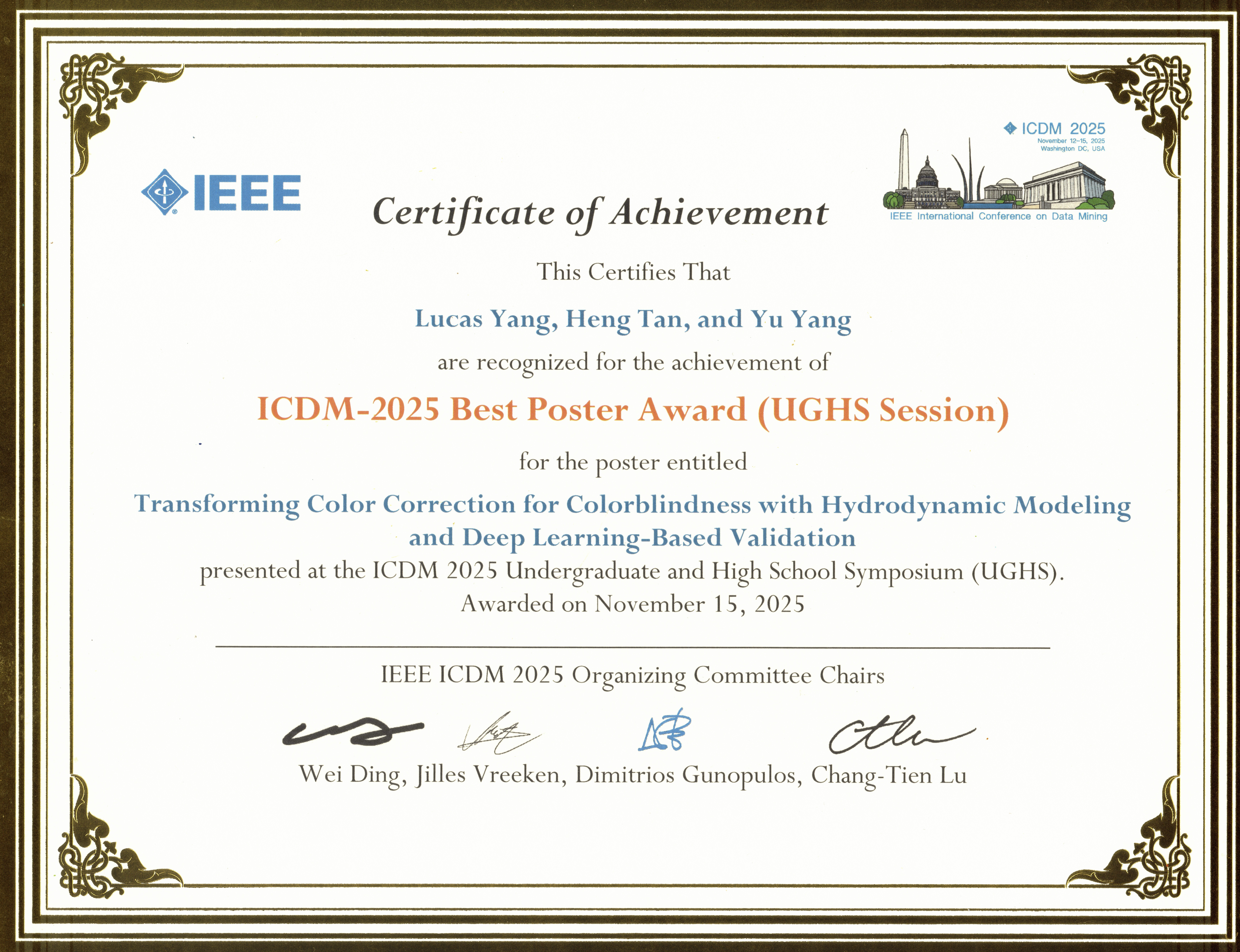 - Nov. 2025 Award: Lucas won both the Best Poster Award (1/84) and a Rising Star Award (top 30) at UGHS@ICDM'25!